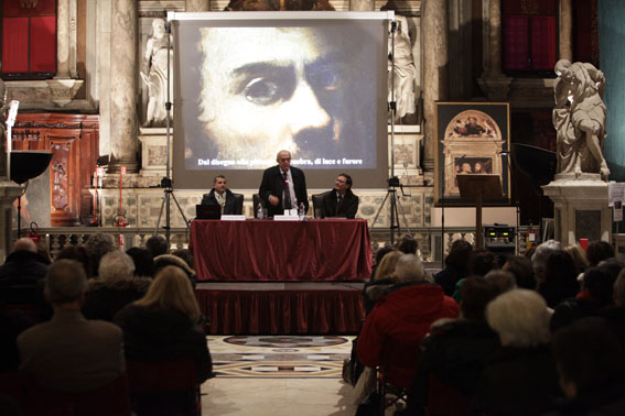 25 Marzo 2013 - Giovanni C.F. Villa, autore del volume Tintoretto di Menarini, durante la presentazione alla Scuola Grande di San Rocco a Venezia